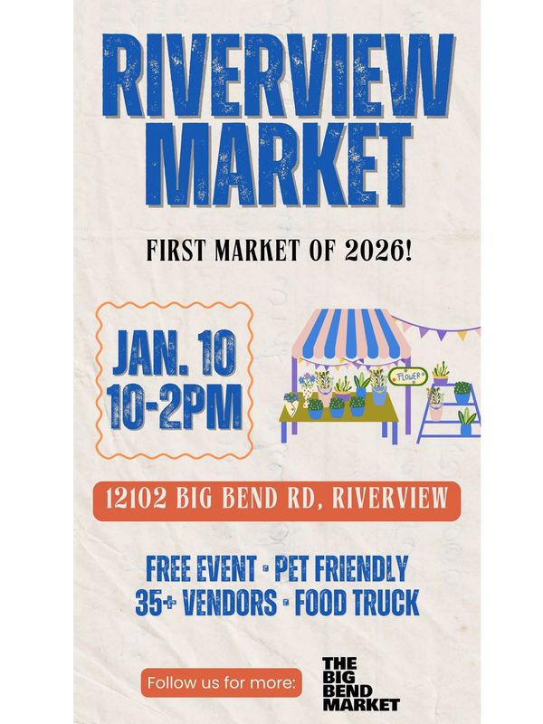The Big Bend Market / Ruskin Fresh Market present indoor Market. 1/18/26 10-2!